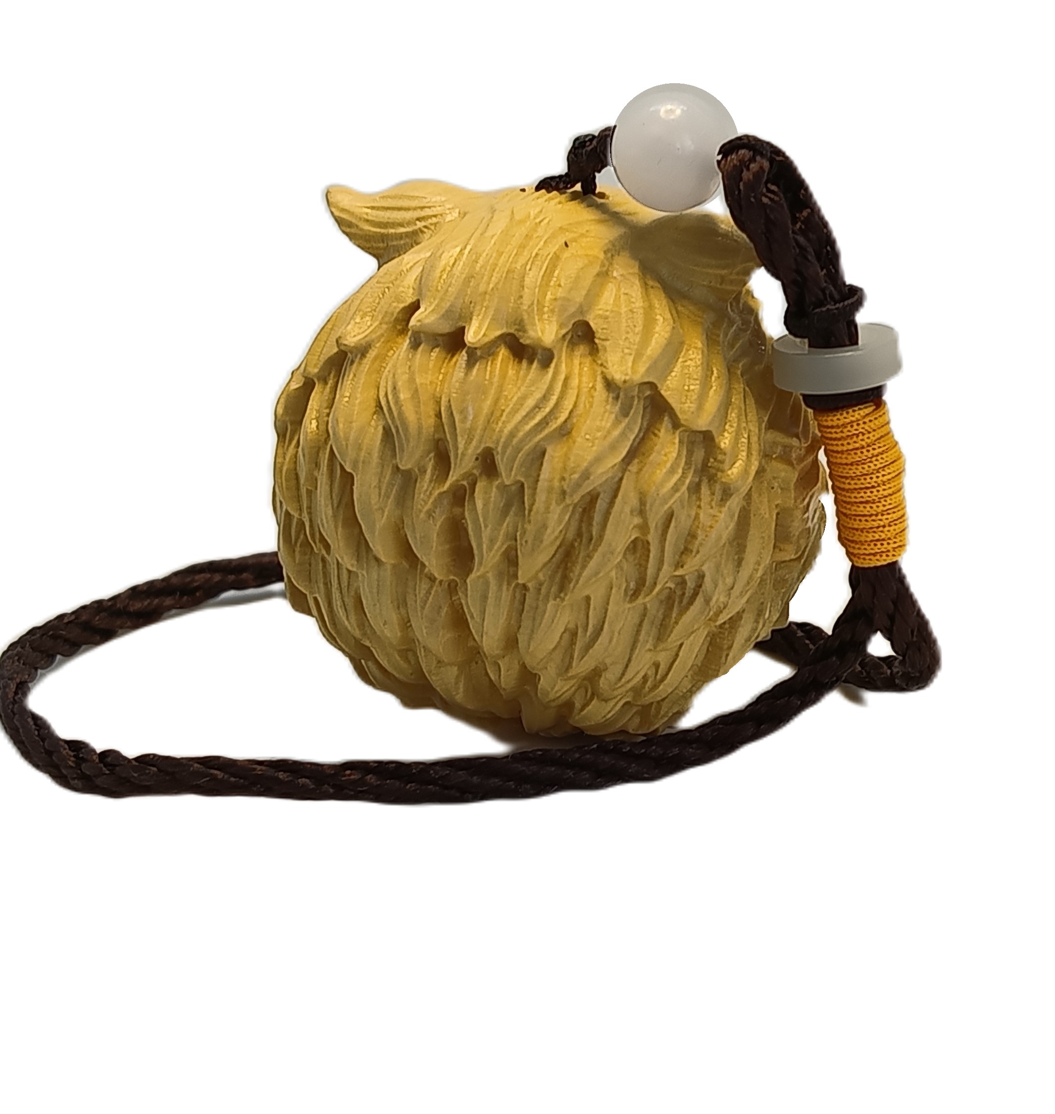 Фигурка изготовлена из натурального самшита, который обладает теплым желто-коричневым оттенком. Голова тигра, детально проработанная с тонкими линиями и узорами, создающими эффект меха и выразительные черты лица. Тигр имеет гневное выражение, глаза наполнены интенсивностью и сосредоточенностью.Фигурка прикреплена к темно-коричневому шнурку, что позволяет использовать ее как подвеску. Две белых бусинки прикреплены к верхней части фигурки, добавляя контраст к общему дизайну.Это украшение не только привлекательно, но и обладает особым энергетическим значением. Оно может стать прекрасным подарком или символом для вас или ваших близких.