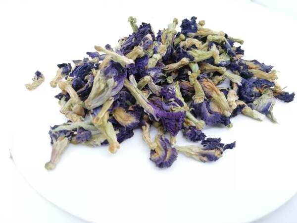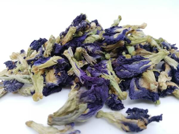 Удивительный напиток из цветов тайской орхидеи (Клитории тройчатой). Он известен также под коммерческими названиями: Чанг Шу, Butterfly pea, Блю Пи. Сlitoria ternatea , мотыльковый горошек или голубой чай – это очень нежное растение, поэтому его нераскрывшиеся бутоны собирают вручную. После сбора их сушат на солнце.