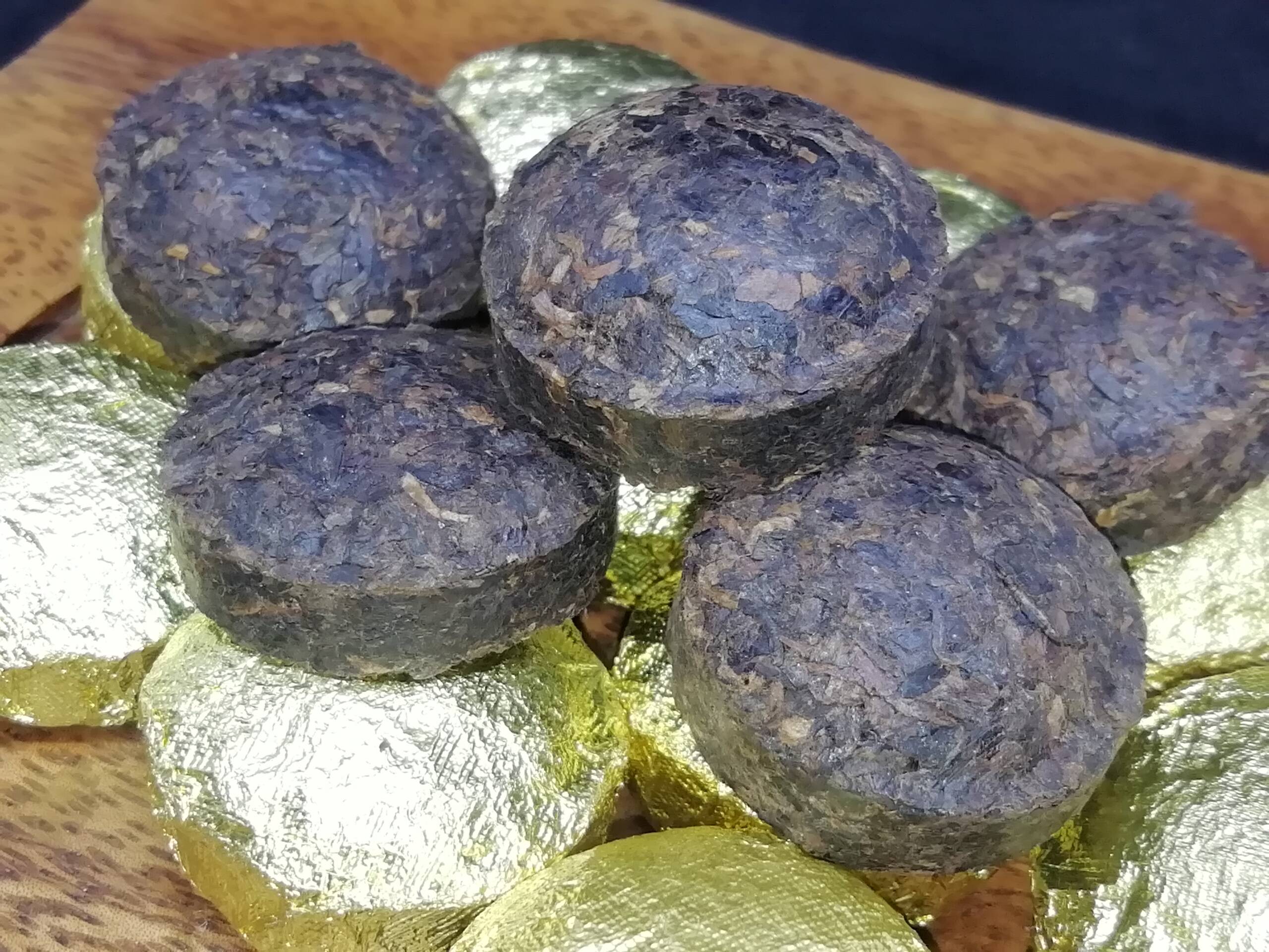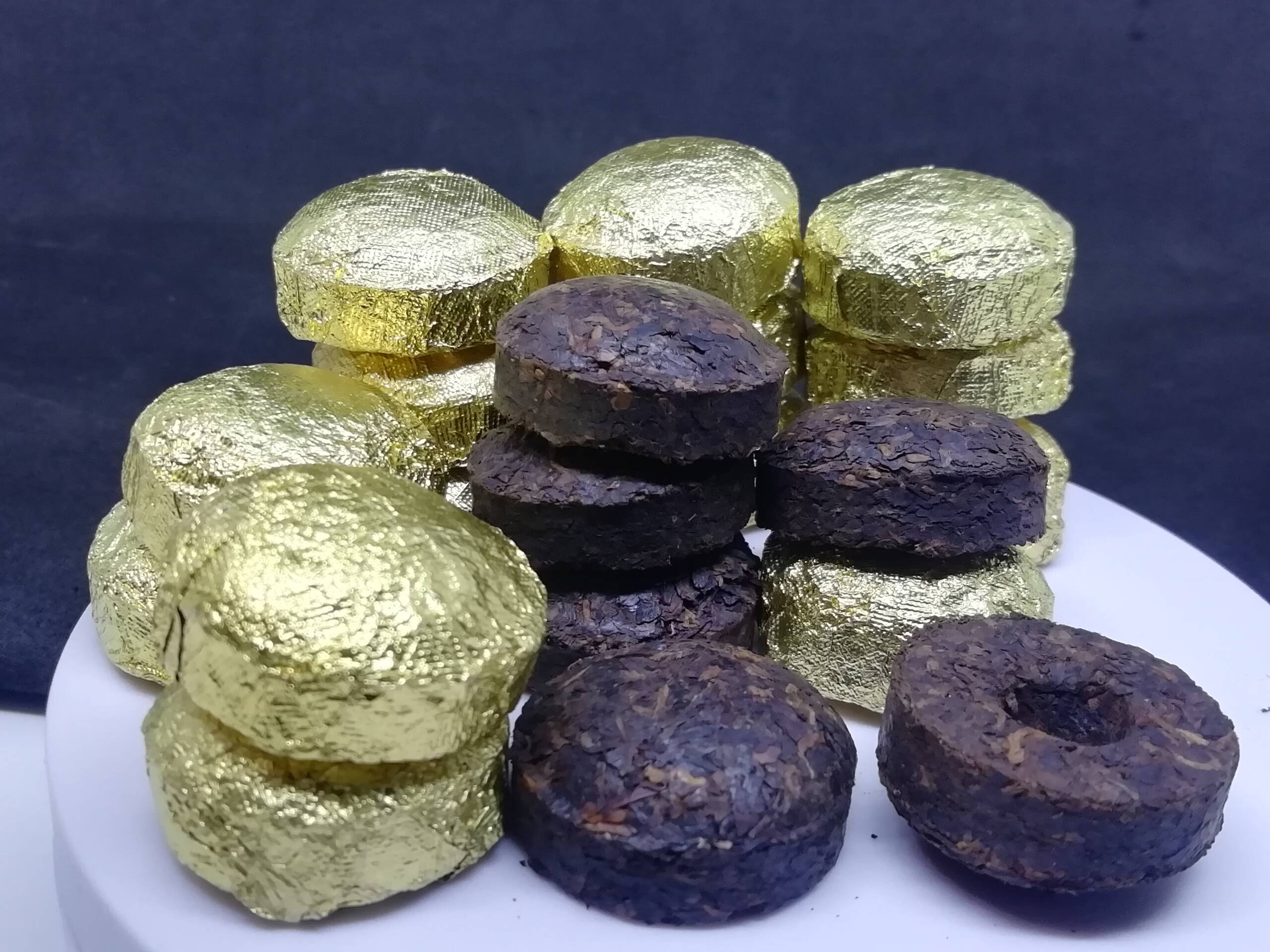 Чай шу пуер Скарб Нації 7г 2014 року вироблено в провінції Юннань громада Цзіньші, місто Куньмін, фабрикою Hunan Xiangfeng Tea Industry Co., Ltd, China в 2014 році.