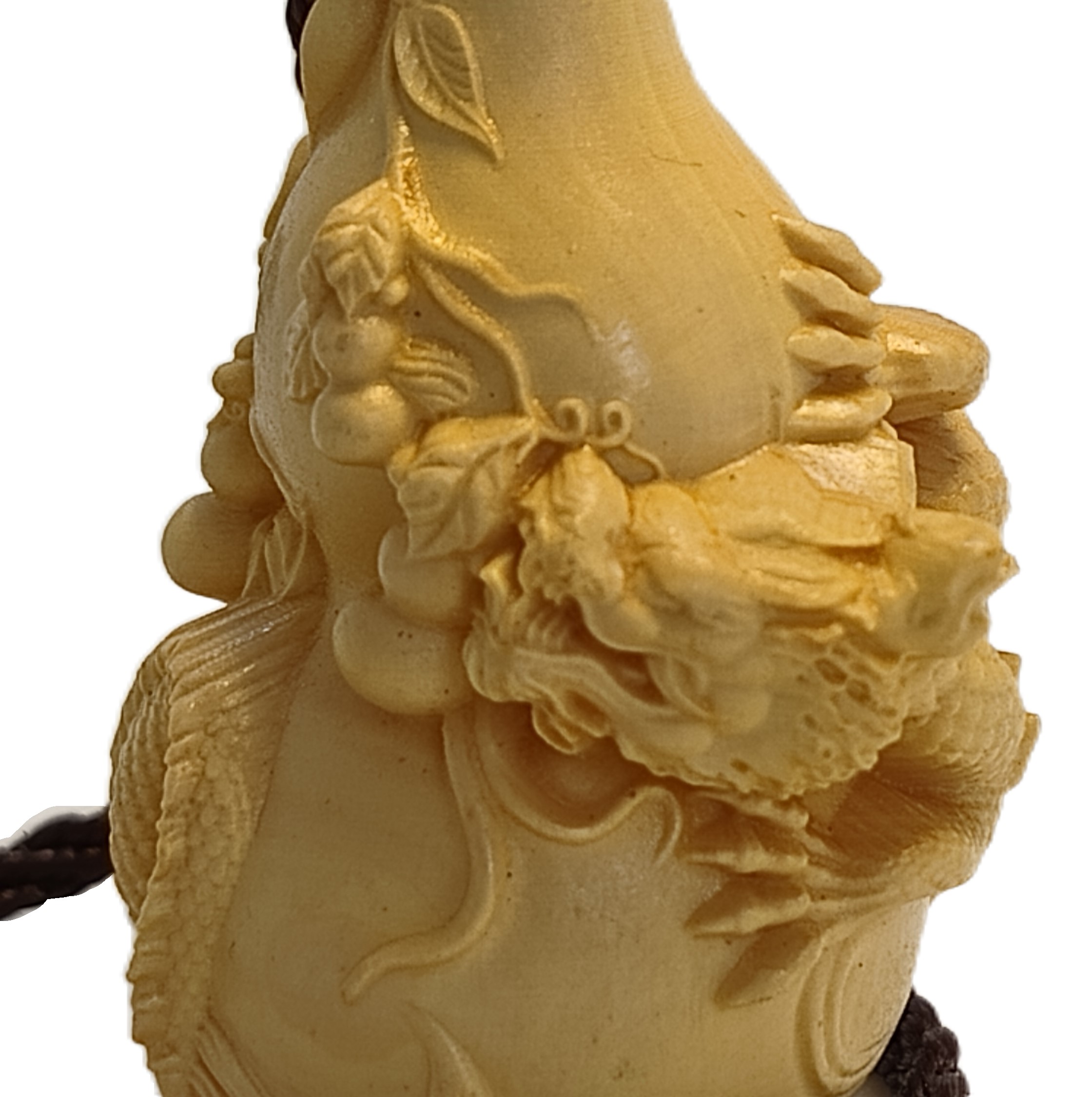 Пдвеска в виде фигурки дракон на тыкве – Много денег много благости с детально проработанным цветочным узором и листьев . Каждая чешуйка и листик вырезаны с большой точностью и вниманием к деталям.